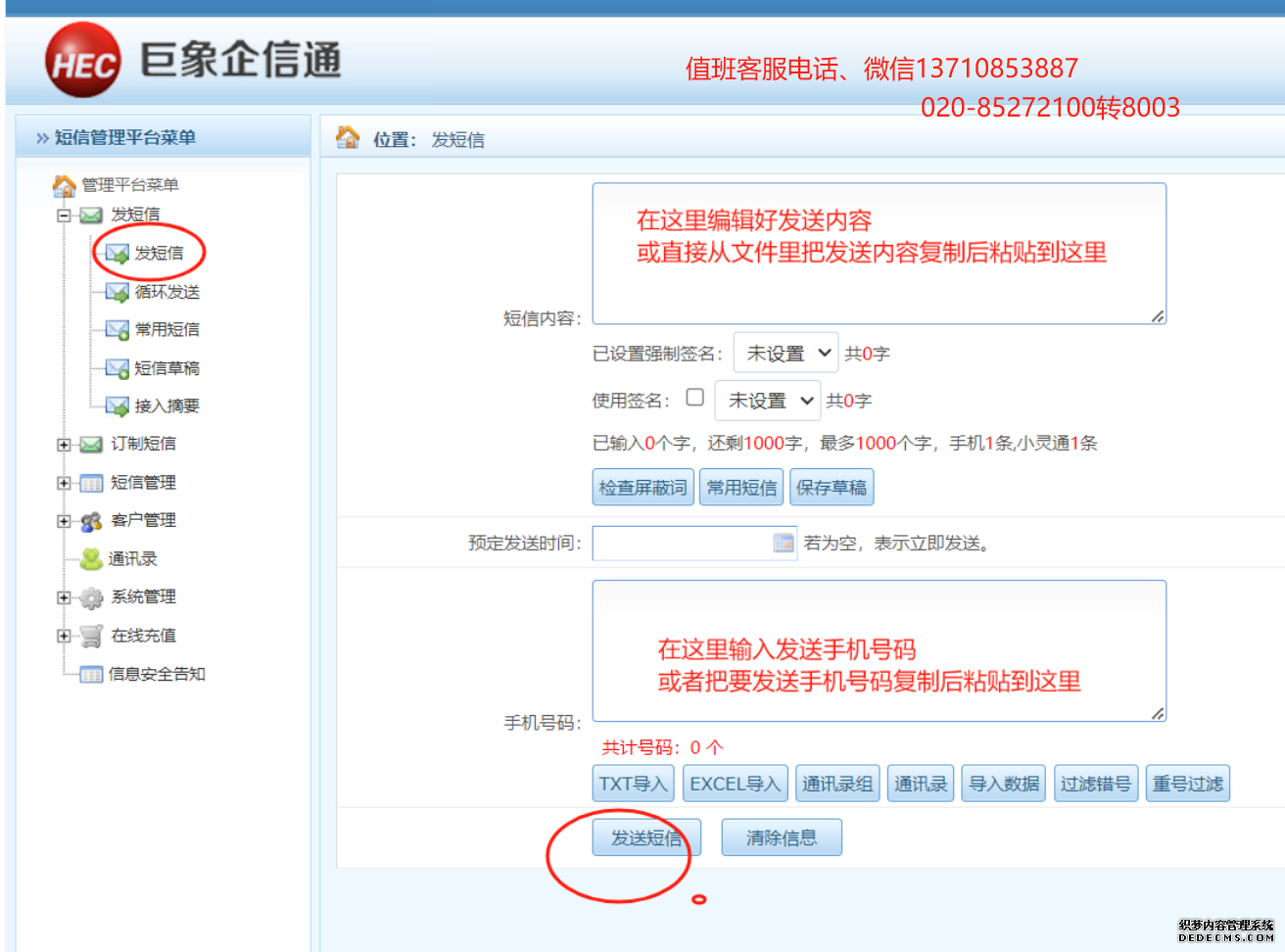 另外,如果要對(duì)很多人發(fā)布會(huì)議通知、發(fā)布資訊,應(yīng)用短信群發(fā)平臺(tái)來(lái)發(fā)布是一個(gè)非常簡(jiǎn)便的方式,登錄sms.hechina.cn免費(fèi)注冊(cè)一個(gè)專用賬號(hào)后聯(lián)系巨象短信平臺(tái)客服微信13710853887開(kāi)通即可。