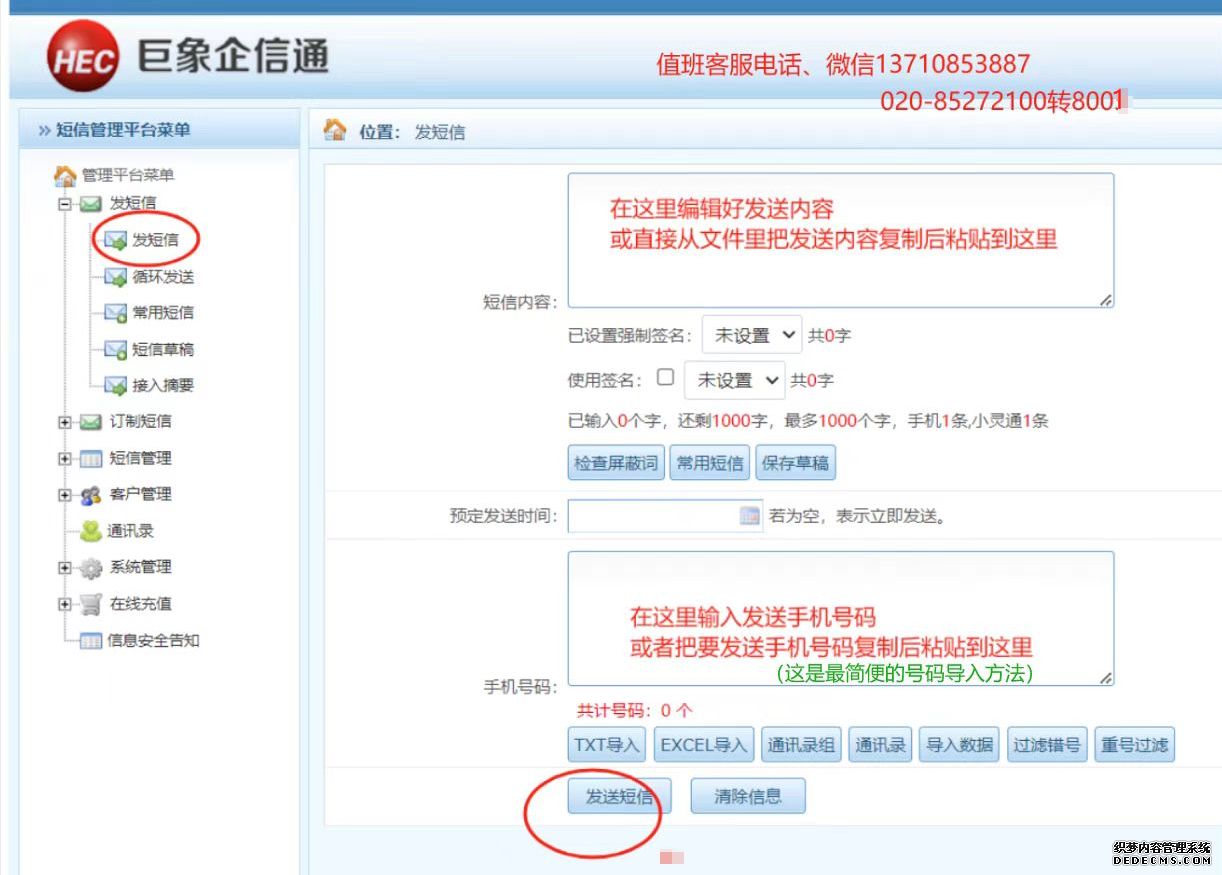 下面詳細介紹怎樣使用企信通批量群發短信: